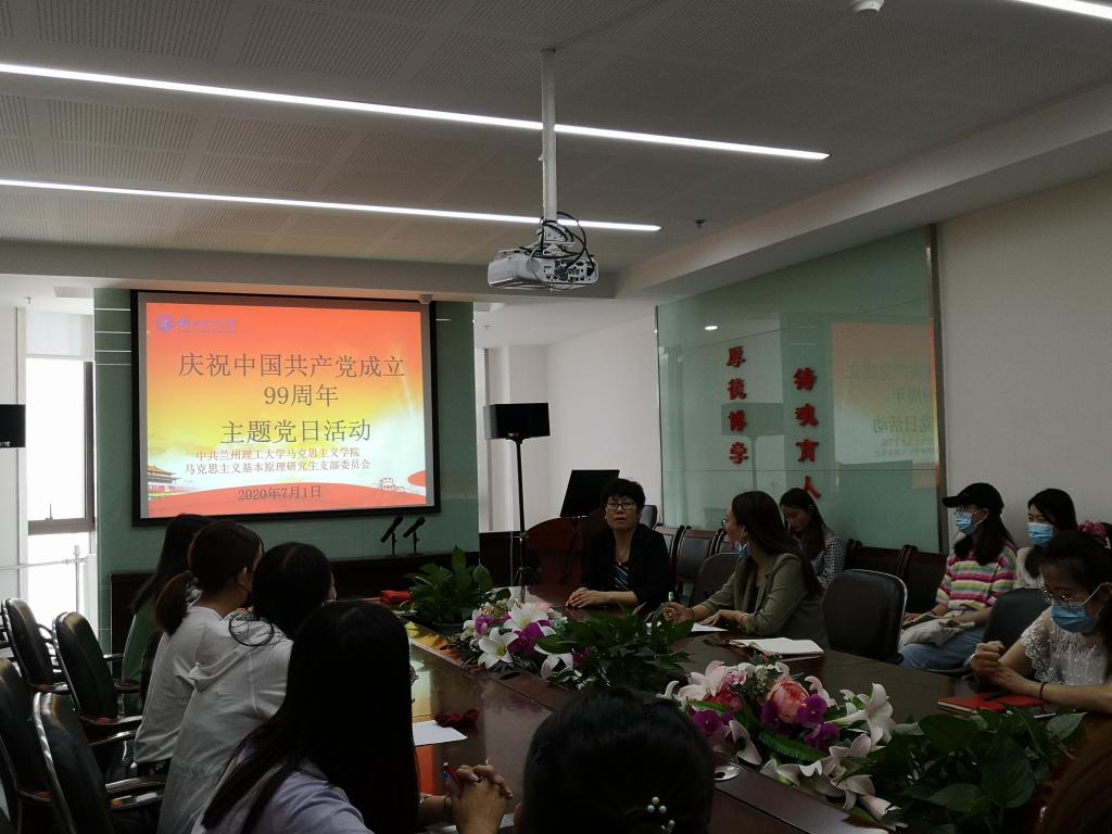 会议伊始,郭凤龙同志带领全体党员重温了党的历史。她以“跟着总书记学党章”为范例,从“认识党章、学习党章的重要性、如何学好党章”三个方面要求支部全体党员深入学习党章、加强党性修养,争做新时代合格党员。紧接着,全体党员学习了“习近平给复旦大学《共产党宣言》展示馆党员志愿服务队全体队员的回信”,深入领悟了回信精神,并号召全体党员认真学习、传承《宣言》精神、坚定理想信念、矢志拼搏奋斗。会议第三项,马克思主义基本原理研究生支部全体党员面对党旗进行了庄严宣誓。会议第四项,全体党员聆听了“把抗疫奇迹转化为前行力量”的主题微党课。