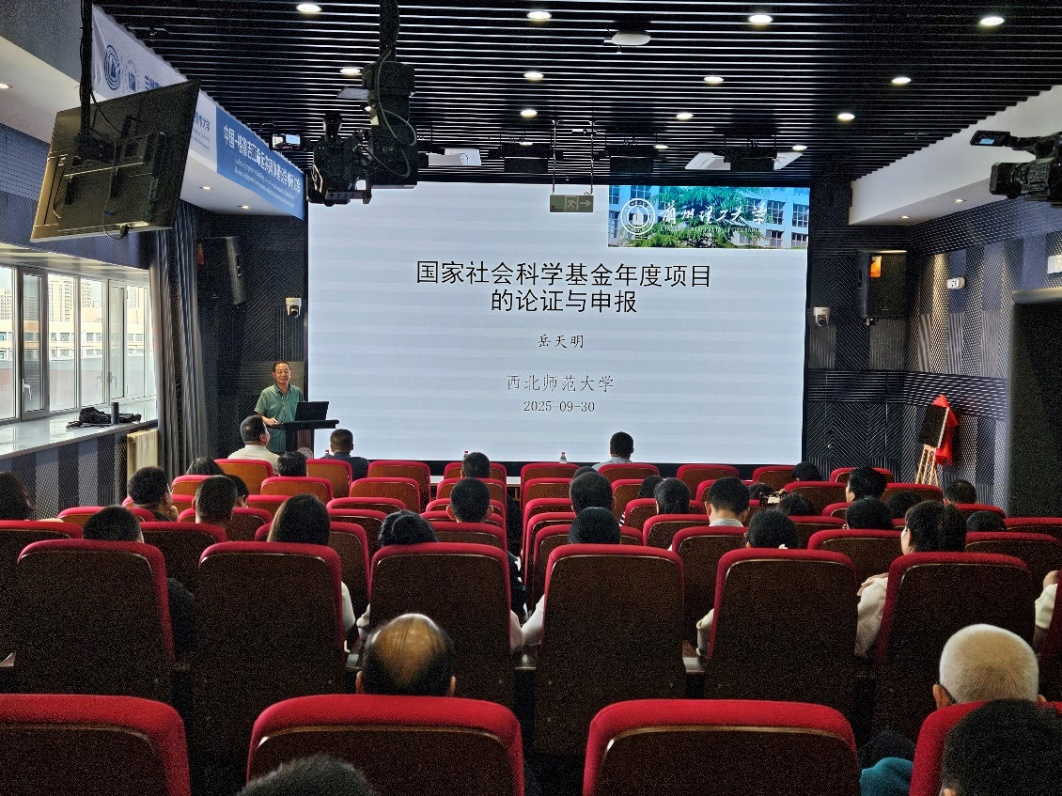 会议伊始,学院举行了首场专家辅导会,特邀主讲嘉宾西北师范大学岳天明教授以《国家社科基金年度项目的论证与申报》为题作了辅导报告,岳教授凭借其丰富的申报与评审经验,从项目申报书的结构、项目的选题、导言、正文及参考文献等五部分内容进行了抽丝剥茧般的深度解析,并梳理了撰写申报书需要注意的事项。