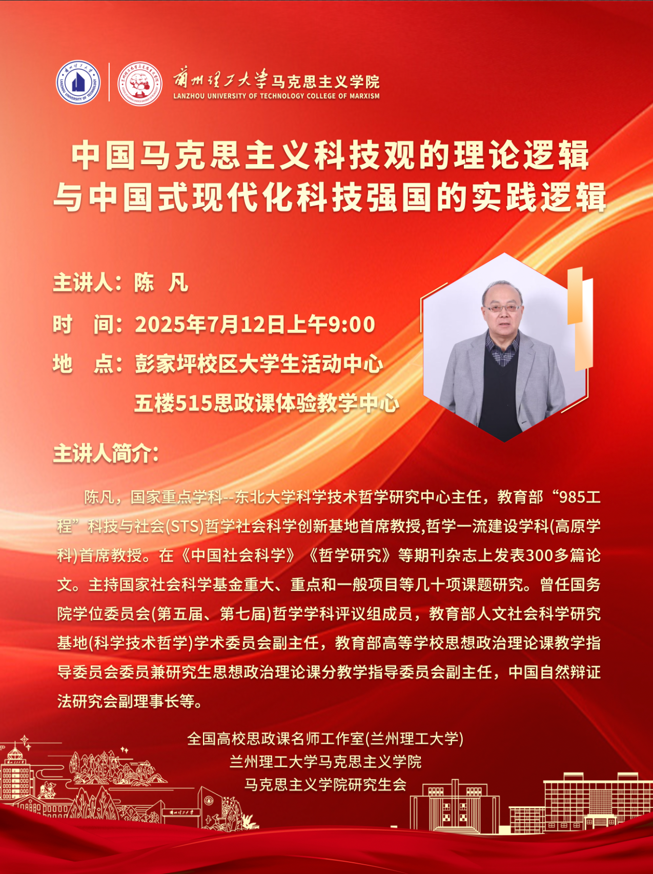 应马克思主义学院邀请,国家重点学科--东北大学科学技术哲学研究中心主任,教育部“985工程”科技与社会(STS)哲学社会科学创新基地首席教授,哲学一流建设学科(高原学科)首席教授陈凡来马克思主义学院作学术讲座。欢迎各位师生光临。